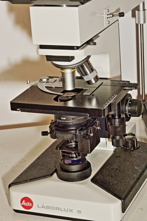 3 LAMBDA LED KIT MOUNTED ON LEITZ FLUOVERT INVERTED FLUORESCENCE MICROSCOPE